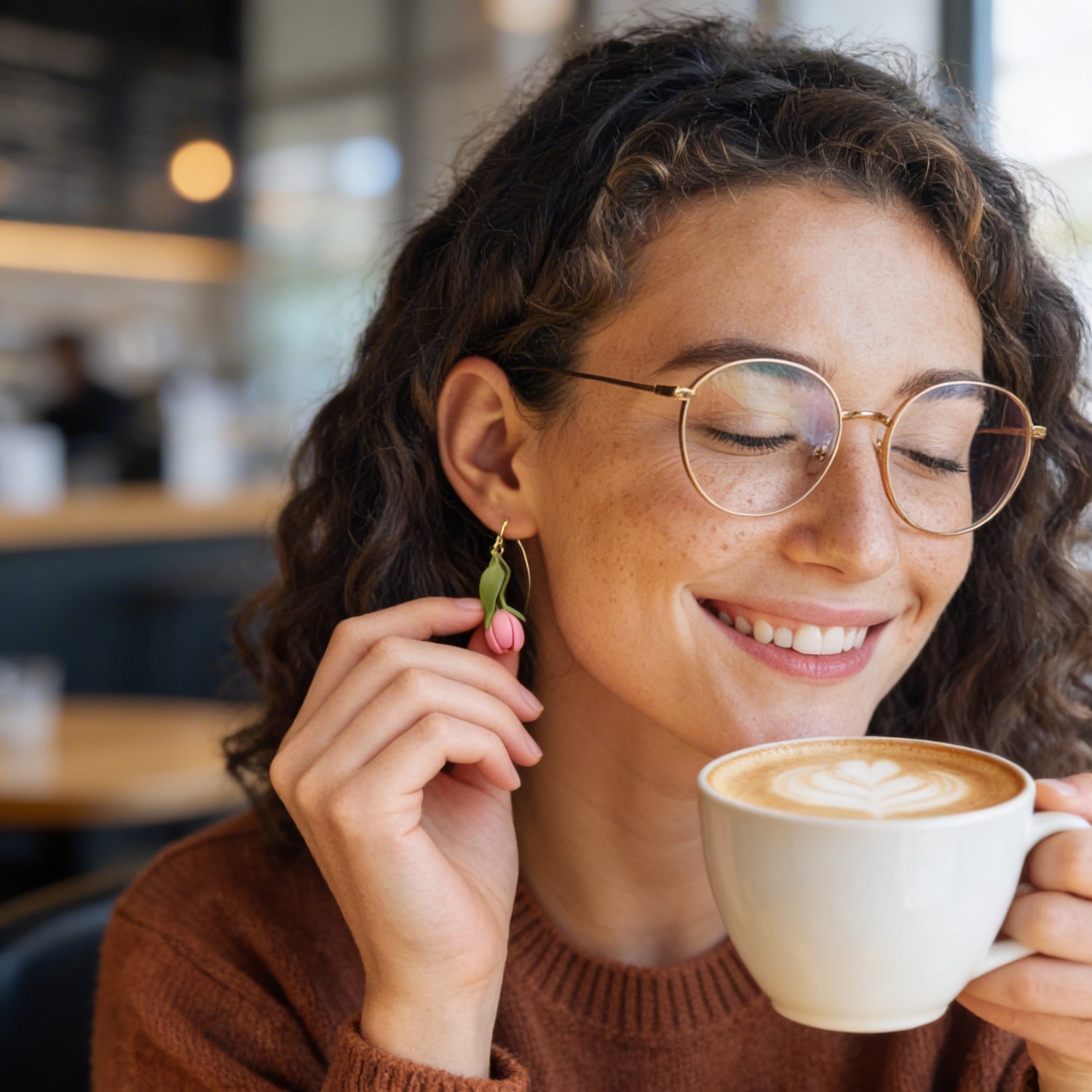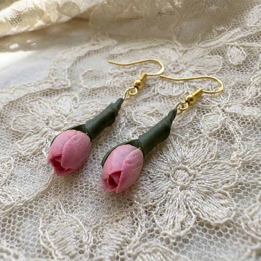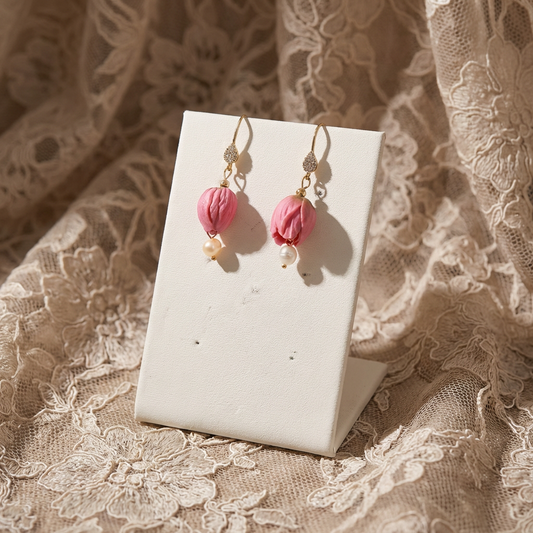 Auskaru glezna | Tulpes ar rasas pērlīti