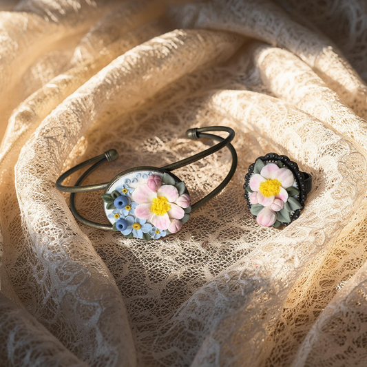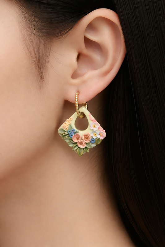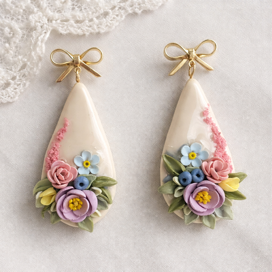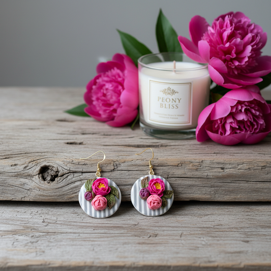 Auskaru glezna “Peonijas zieds” | Pilienveida ar bantīti