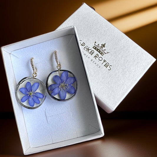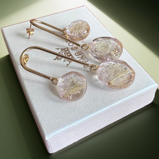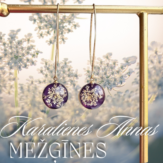 Auskari "Kristāla podziņas” ar savvaļas burkāna ziediem
