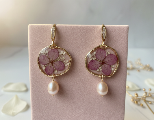 Apaļi auskari | Rudens hortenzijas ar pērlīti
