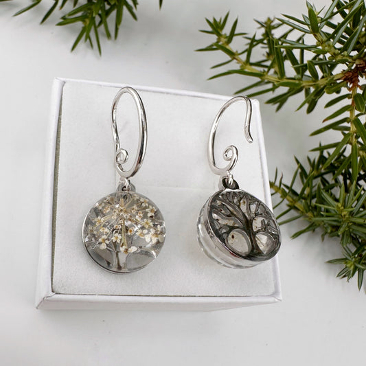 Sudraba krāsas auskari "Ziema" ar burkānziediem