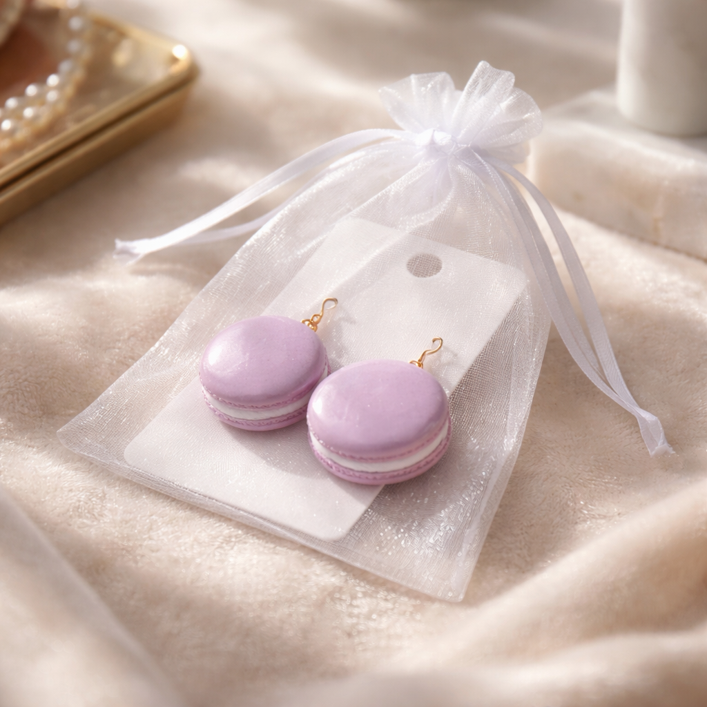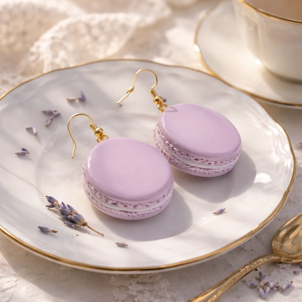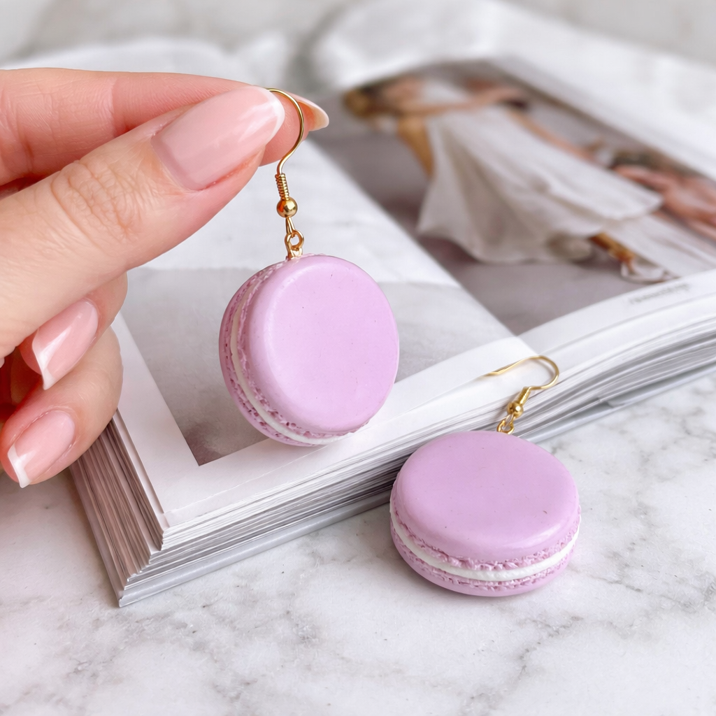 Šie makarūn auskari ir rotaļīgs un maigs akcents, kas iedvesmu ņem no franču konditorejas estētikas. Maigi rozā tonis, apaļā forma un redzamais “pildījuma” slānis rada asociāciju ar saldu mirkli, ko gribas izbaudīt lēnām. Tie ir auskari, kas uzrunā ar vieglumu, sievišķību un nelielu humora pieskārienu.