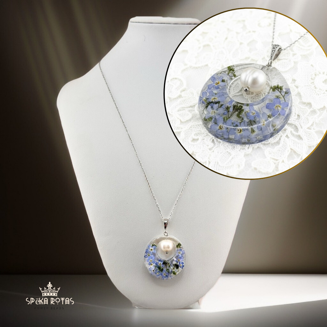 Ienes dabas maigumu savā ikdienā ar neaizmirstulītēm, kas iemūžinātas epoksīda sveķos. Šī elegantā kaklarota atgādinās Tev par Latvijas pļavu skaistumu, par vienkāršības burvību un par mūžības klātbūtni gan sevī, gan citos. Tā ir gan unikāls aksesuārs, gan dziļi simbolisks vēstījums – savienošanās ar dabu un tās netveramo burvību.