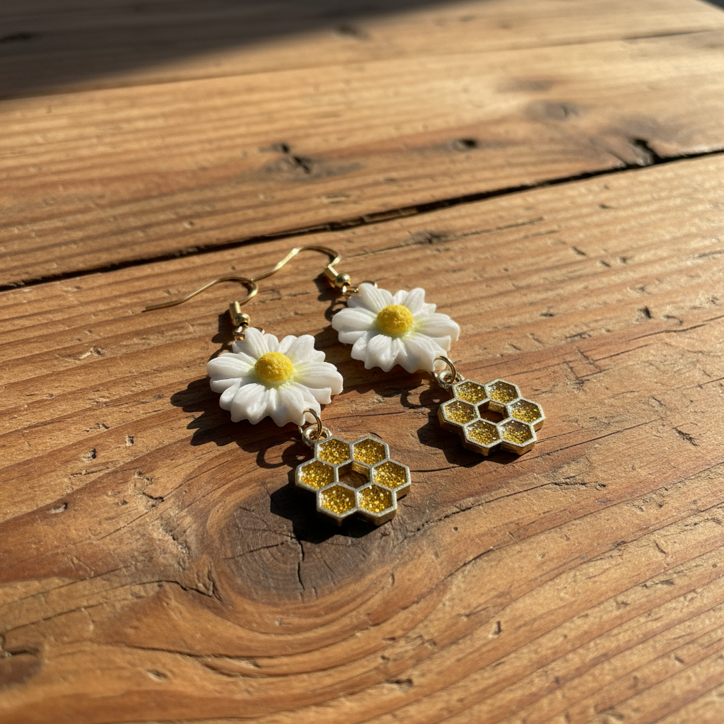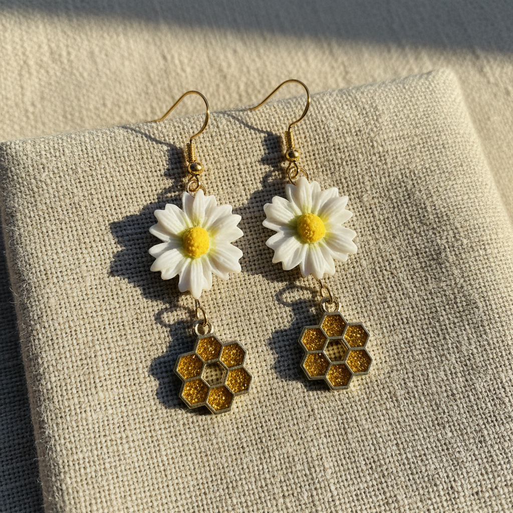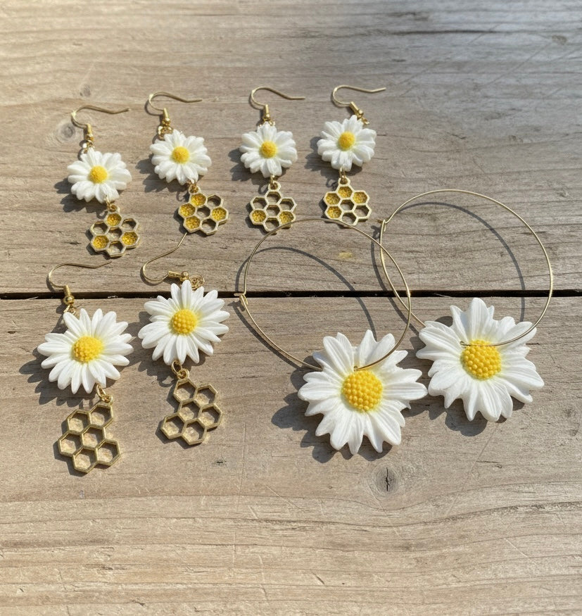 Margrietiņu auskari ar medus šūnām