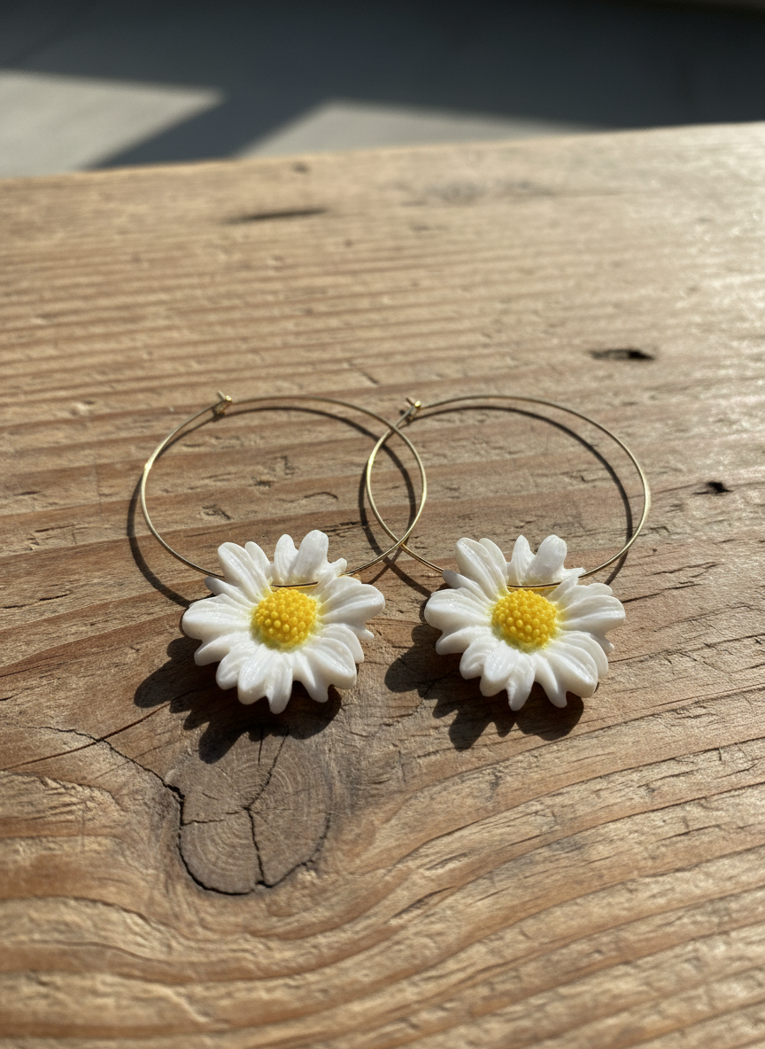 Katra margrietiņa ir veidota ar rokām no polimērmāla, pievēršot uzmanību ziedlapu formai un proporcijām, lai rota saglabātu dabisku izskatu. Metāla detaļas piešķir auskariem vieglu spīdumu un akcentu, kas skaisti izceļas gan saules gaismā, gan ikdienas kustībā. Auskari ir viegli un ērti valkāšanai, piemēroti gan vasaras ikdienai, gan svētku noskaņai.