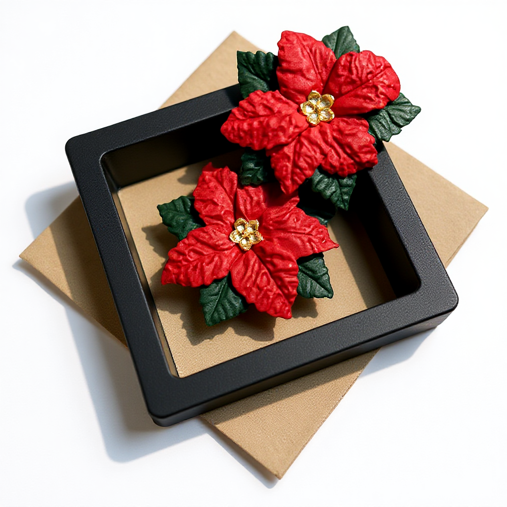 Roku darbs Ziemassvētku piespraude puansentija, rota - kas radīta svētku laikam un siltajām sajūtām. Auskari ir veidoti no polimērmāla – viegls, elastīgs un neplīstošs materiāls, kas nebaidās no kritieniem.