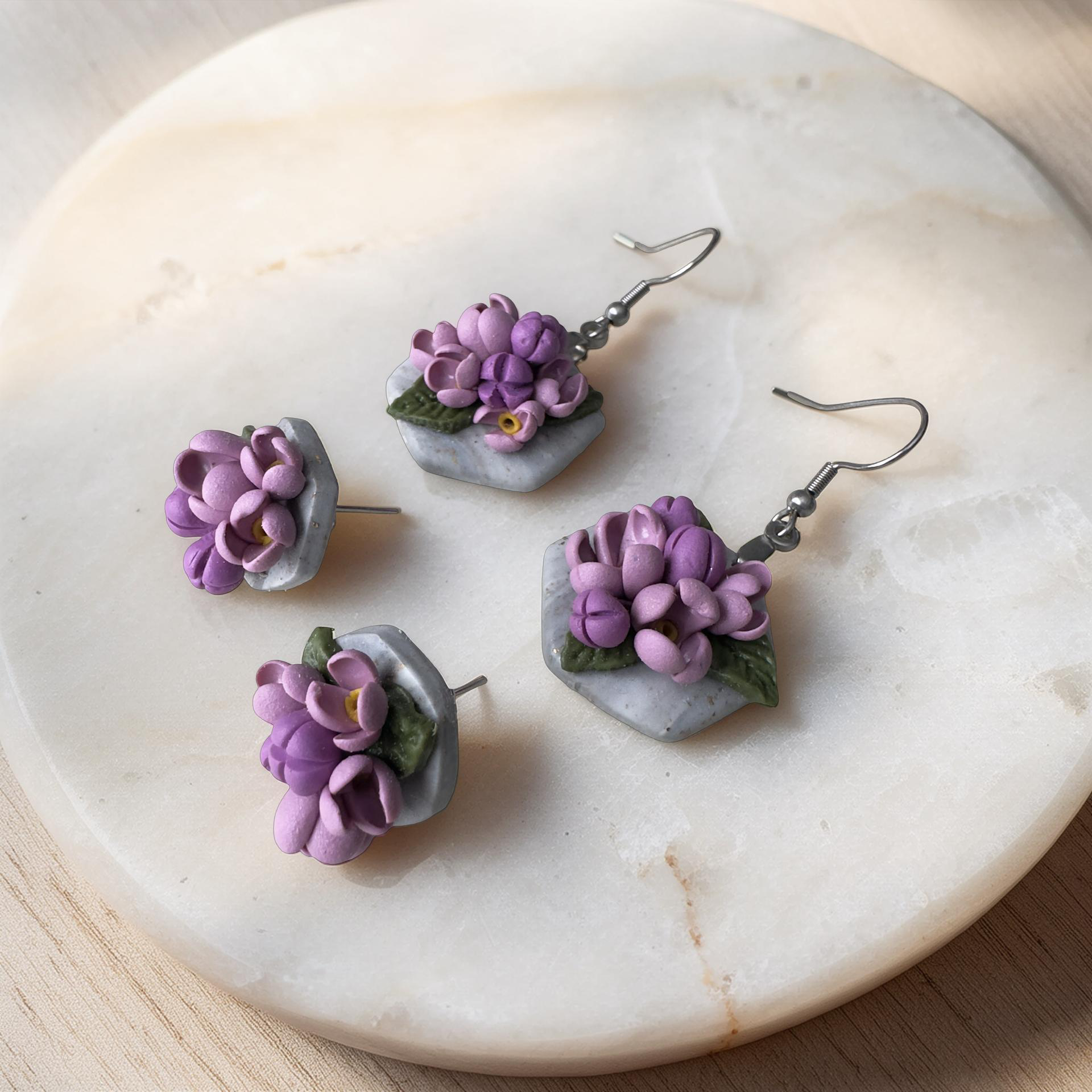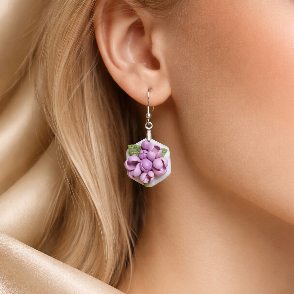 Ceriņziedu auskari ir maiga un gaisīga rota, kas piešķir siltumu un svētku sajūtu. Katra detaļa ir rūpīgs roku darbs – polimērmasa veidota kā smalka miniskulptūra, tāpēc katrs pāris ir nedaudz unikāls. Auskari ir viegli, ērti un piemēroti ikdienai, svētku vakariem vai dāvanai sievietei, kura mīl ziedu rotas un smalku estētiku.