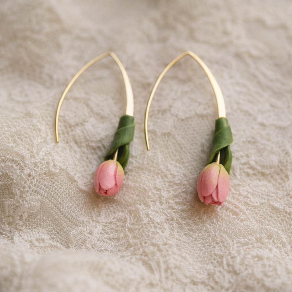 Tulpe ir viens no nepacietīgākajiem pavasara ziediem – tā tiecas pretī gaismai pat tad, kad zeme vēl ir auksta. Veidojot šos auskarus, mana iedvesma bija tieši šis trauslais, bet spēcīgais mirklis: pavasara rīta svaigums un pirmais, maigais rozā tonis, kas parādās tulpes pumpurā. Tas ir stāsts par jaunu sākumu un dabas atmošanos, ko tagad vari paņemt līdzi savā ikdienā.