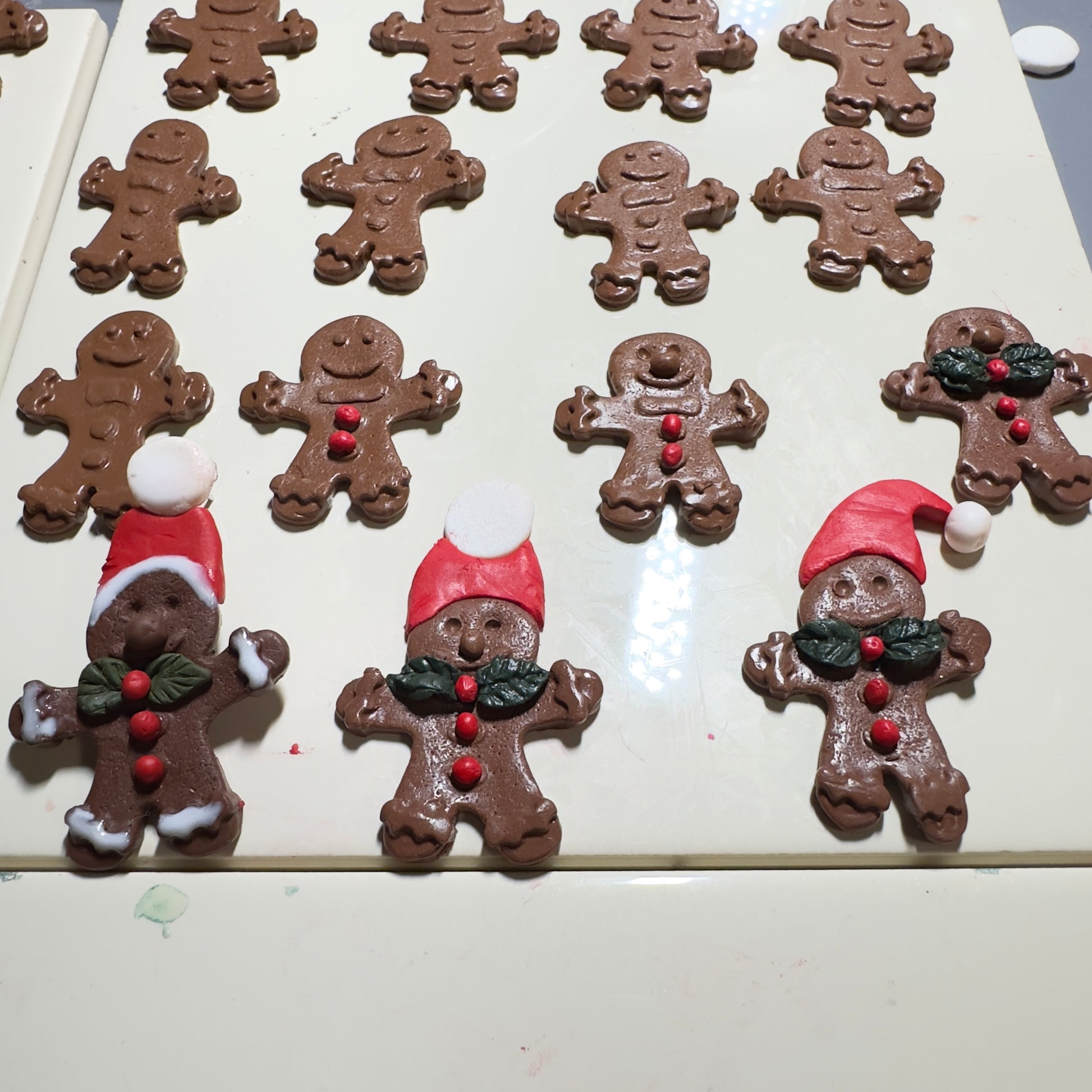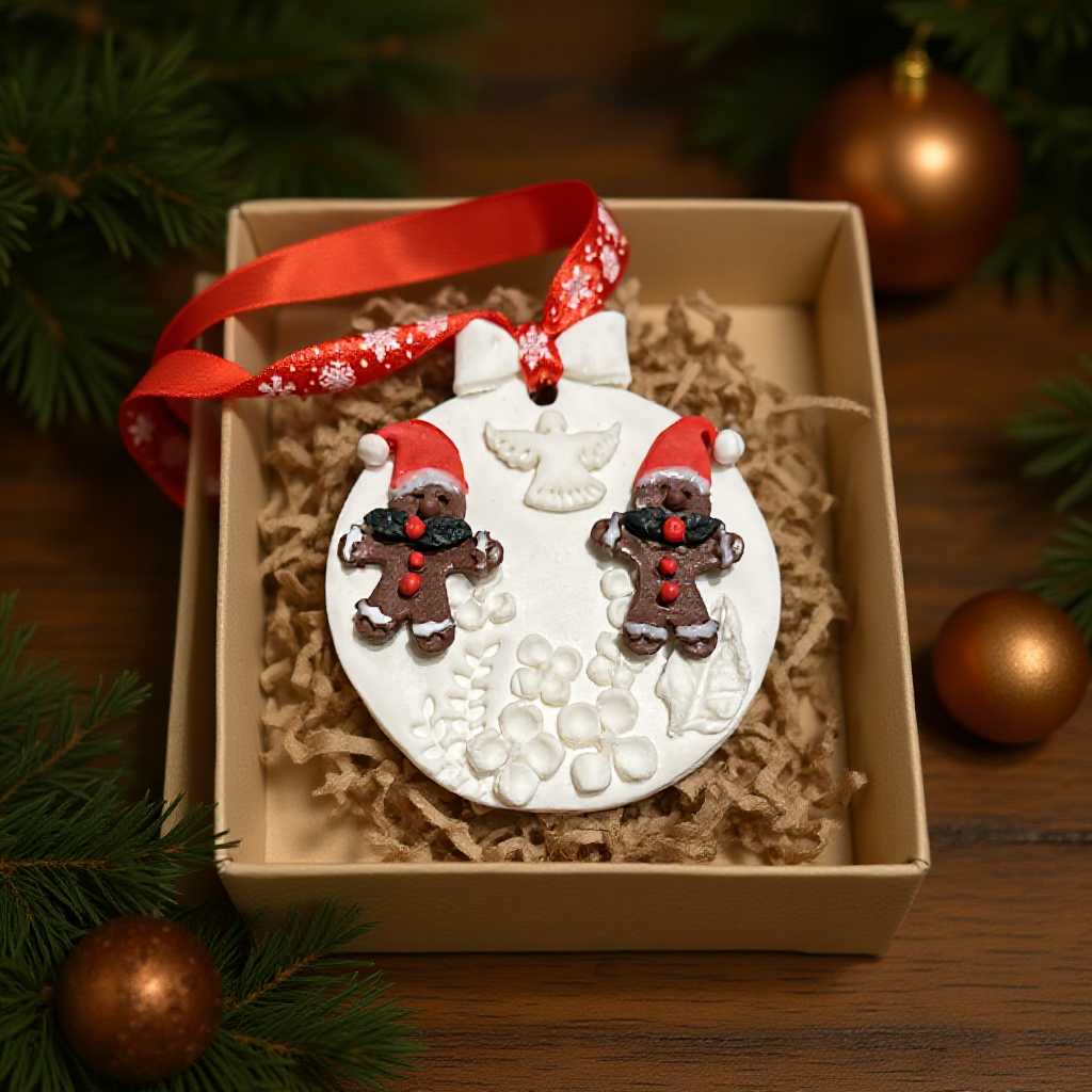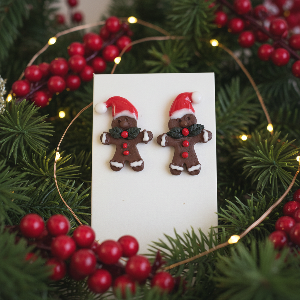 Roku darbs Ziemassvētku auskari ar piparkūku rūķīšiem – īpašs sezonas rotu pāris, kas radīts svētku laikam un siltajām sajūtām. Auskari ir veidoti no polimērmāla – viegls, elastīgs un neplīstošs materiāls, kas nebaidās no kritieniem un ir patīkami mīksts. Sargāt no skrāpējumiem.