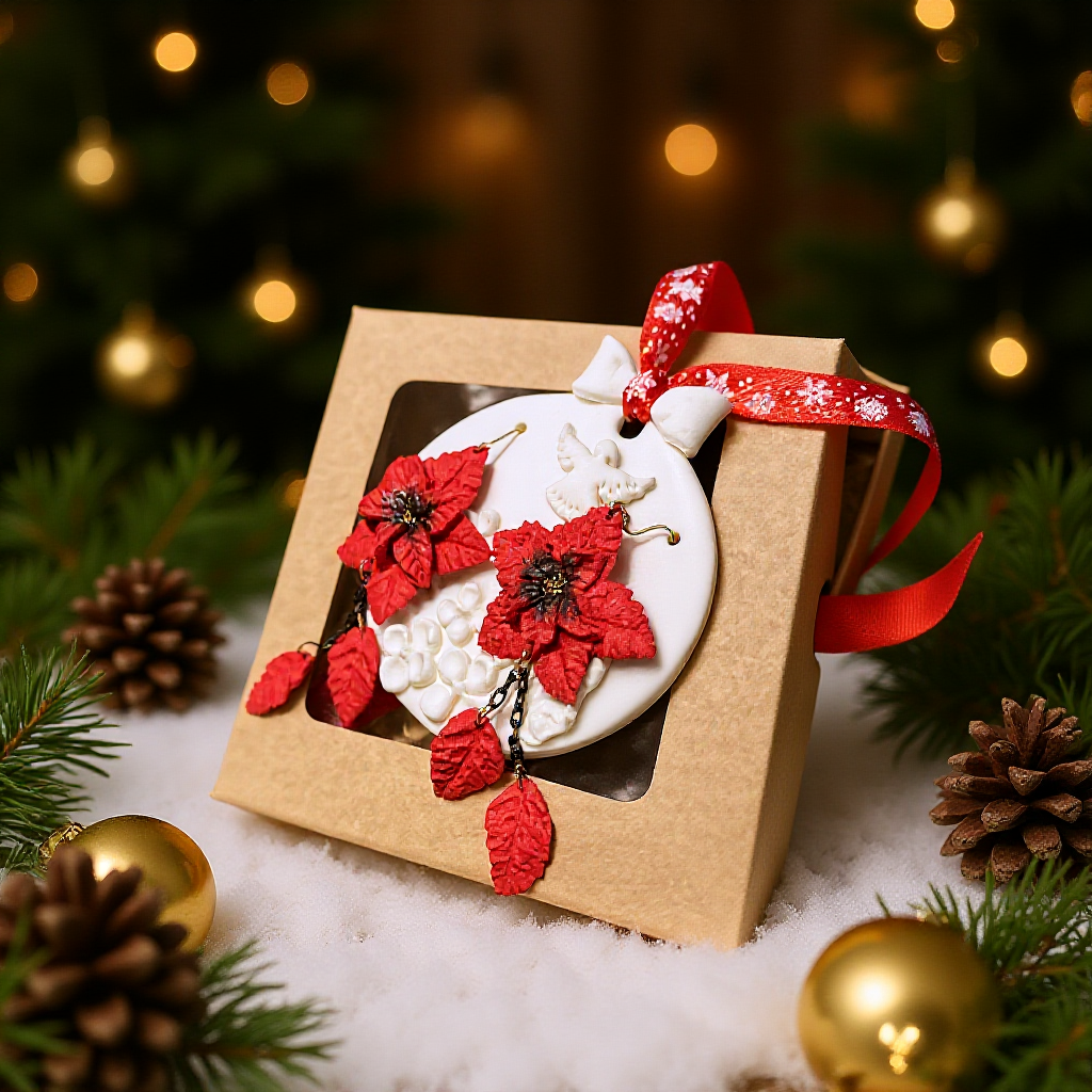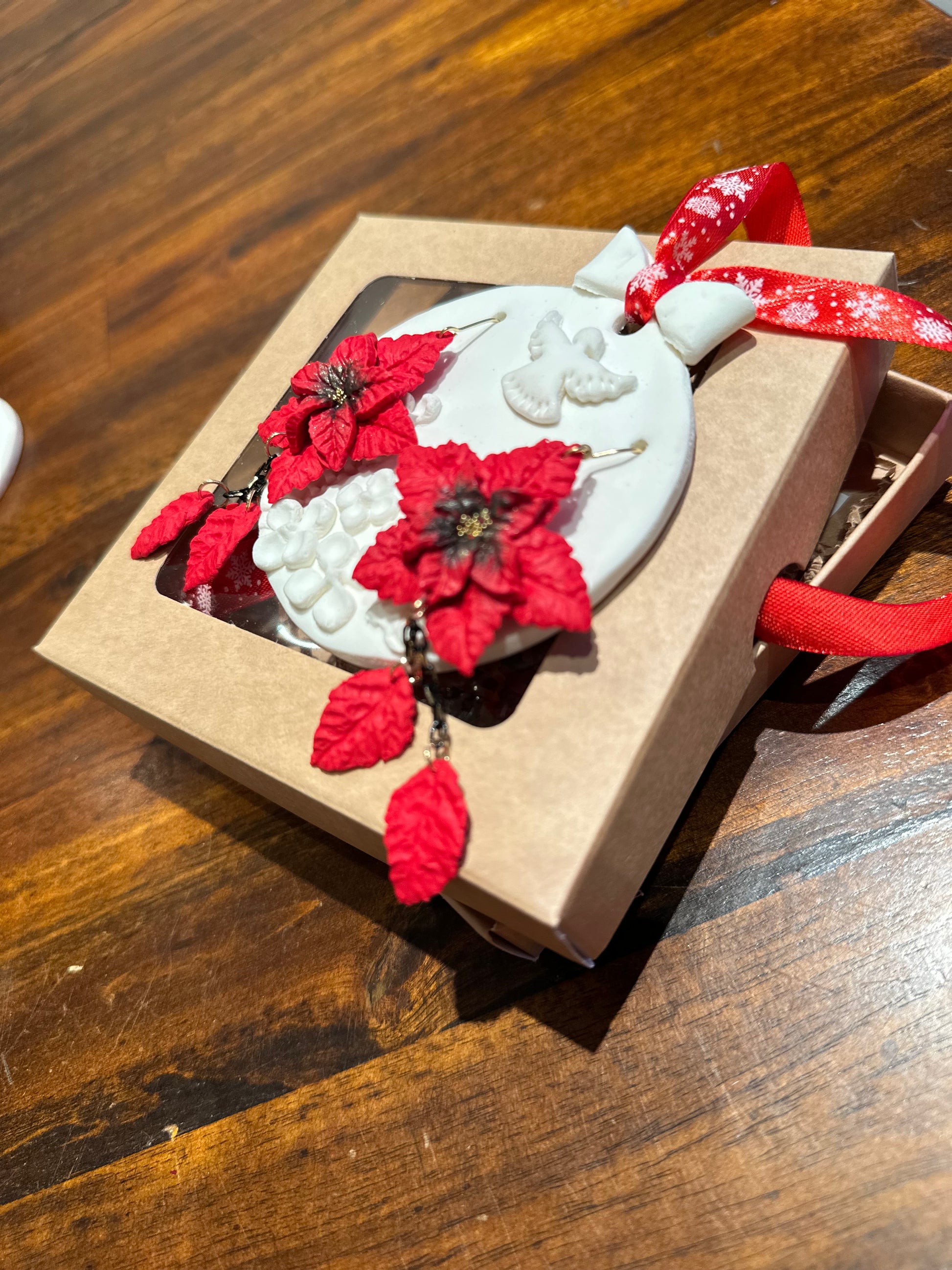 Ziemassvētku auskari dāvanai kopā ar eglīšu rotājumu | Puansentija