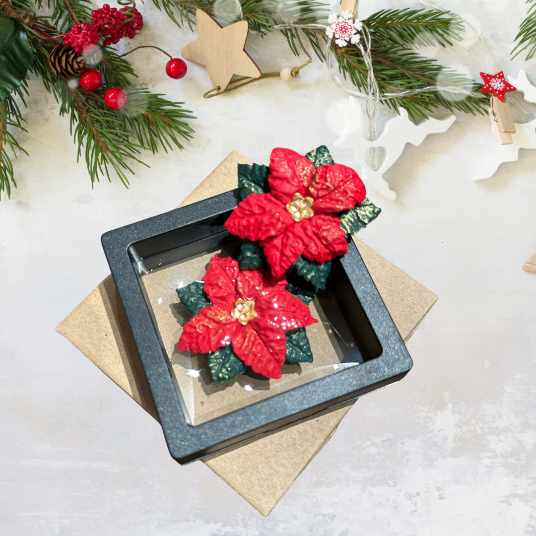Roku darbs Ziemassvētku piespraude puansentija, rota - kas radīta svētku laikam un siltajām sajūtām. Auskari ir veidoti no polimērmāla – viegls, elastīgs un neplīstošs materiāls, kas nebaidās no kritieniem.